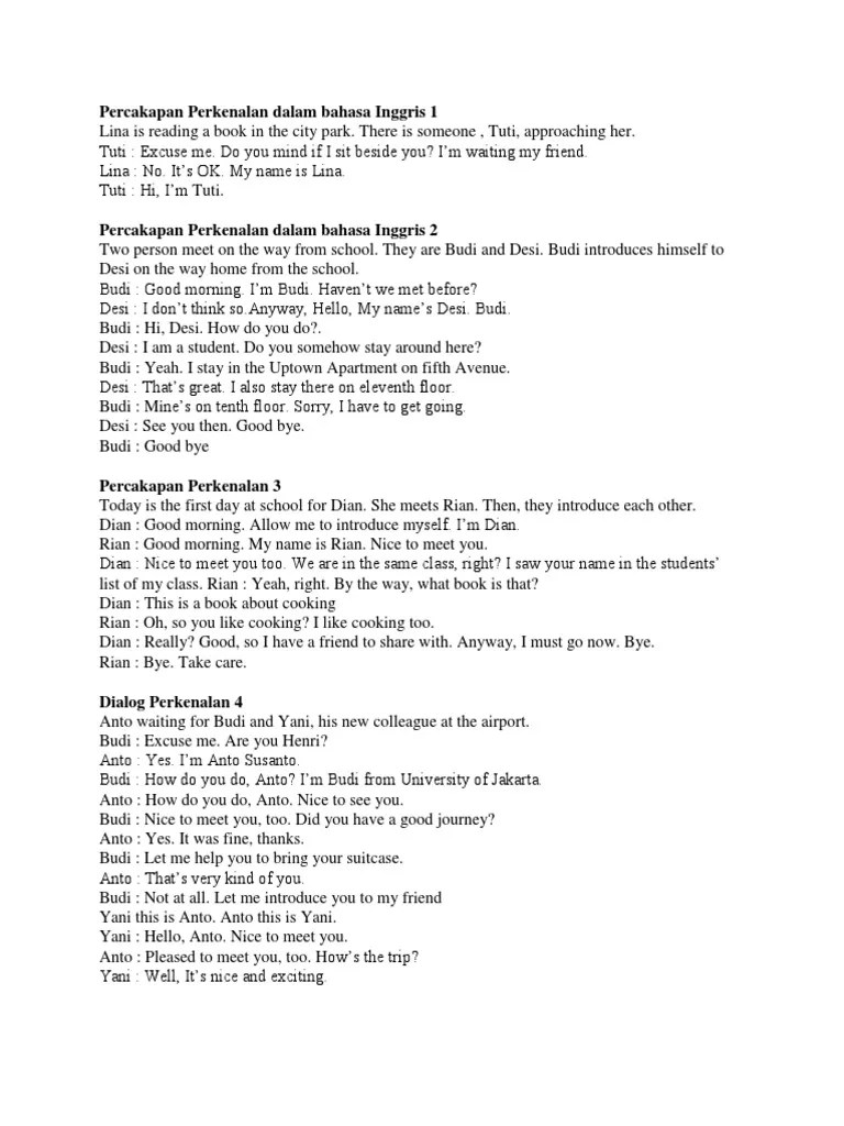 Perhatikan contoh dialognya berikut ini, yuk! What is your name?" lisa: This dialogs samples for introducing self and others in english is taken from: . Contoh dialog perkenalan bhasa inggris 2 orang. (senang berjumpa lagi denganmu.) · pleased to meet you.